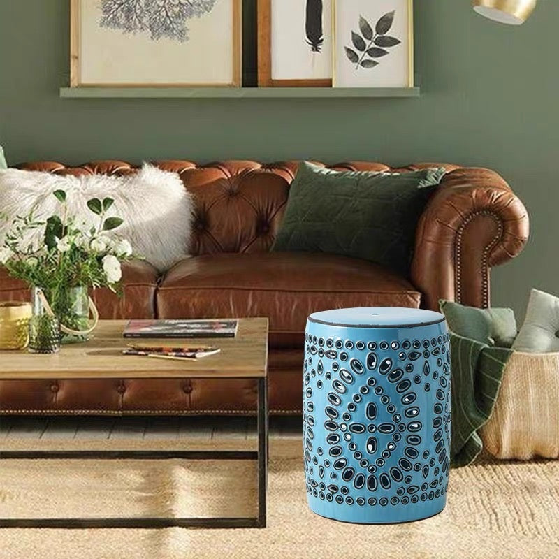 Ceramic Drum Stool Chinese Style Retro Red Blue Decorative Stool